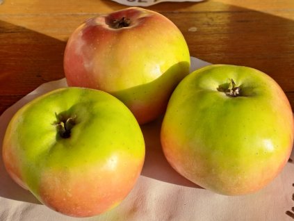 Podnož: jabloňový semenáč • Česká odrůda původem z Domažlicka, z 18. století. Velmi šťavnatá, příjemně navinulá chuť. Středně velké až velké tmavě...