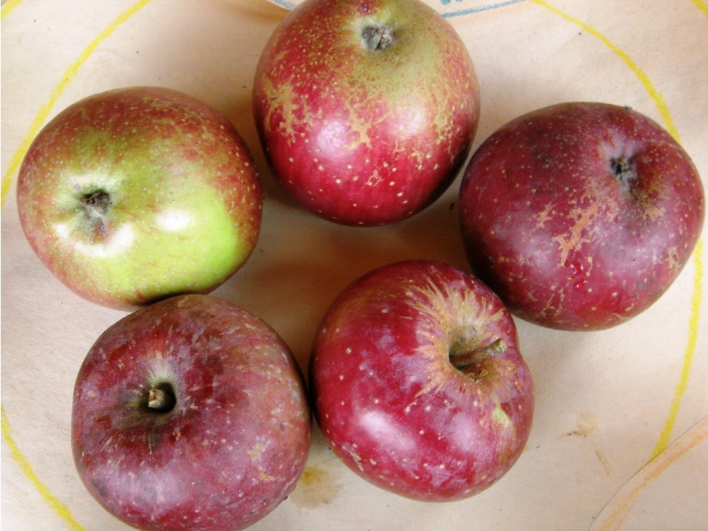 Podnož: jabloňový semenáč • Velmi stará pozdně zimní asi německá odrůda ze 16. století. Střední až velké plody nafialověle červené barvy s tečkami, ojíněné. Chuť sladce navinulá, mírně kořenité chuti. Velmi dlouho skladovatelná, vhodná i do vyšších poloh.