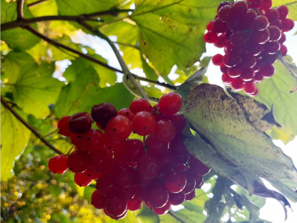 Kalina obecná (Viburnum opulus) - náš původní divoký keř, vhodný do remízků, parků i zahrad. Je i ozdobný - na jaře bílým květem či na podzim červenými plody, které slouží i jako potrava pro ptáky. Dorůstá maximálně do 4 m.