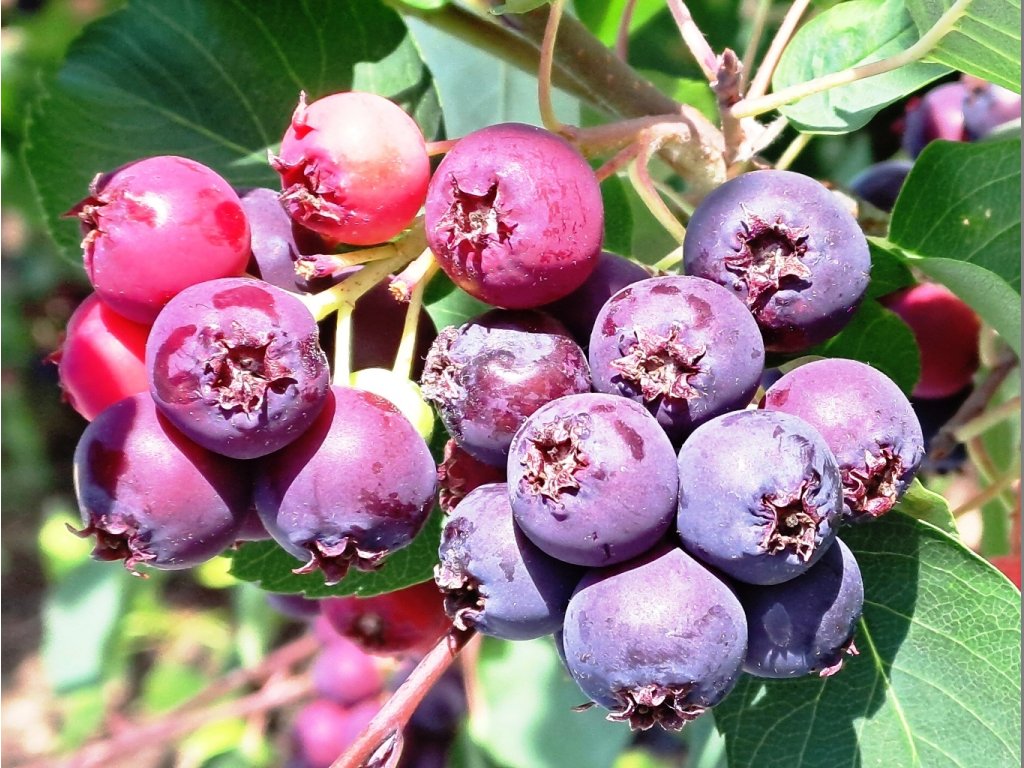 Muchovník olšolistý (Amelanchier alnifolia)´Thiessen´ - velmi plodná oblíbená kanadská odrůda. Výška 3-5 m. Zraje od konce června, do poloviny července.