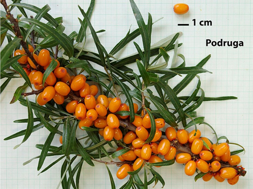 Oválné oranžové plody středně sladké chuti, středně velké (0,8 g). Středně raná, velmi úrodná odrůda rakytníku. Dozrává v druhé polovině července. Téměř bez trnů. Snadná sklizeň, plody se dají dobře odtrhnout. Výhodou pro sklizeň je také nižší vzrůst keře. Dobře zvládá pokles teplot. Odrůda byla vyšlechtěna v Rusku.