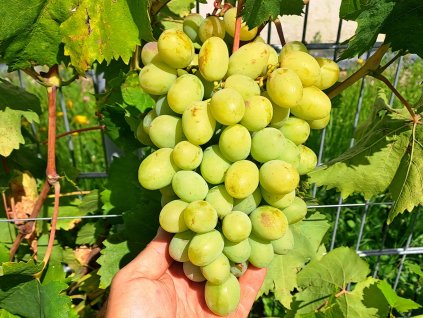 Podnož: bujně rostoucí K5BB. Bílá stolní raná odrůda. Zraje začátkem září. Hrozen je velmi velký (0,7-2 kg!), bobule je velká. Dužnina je masitá,...
